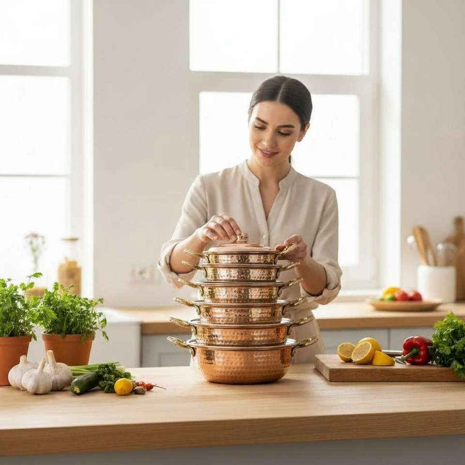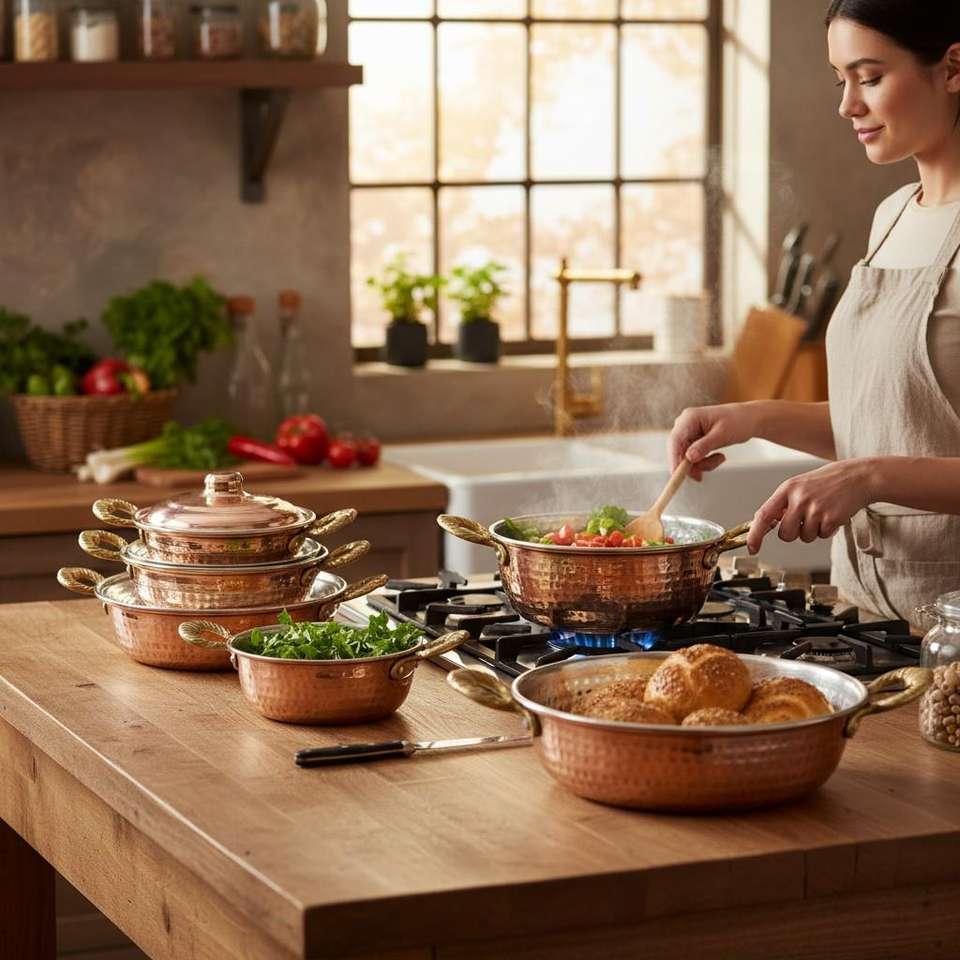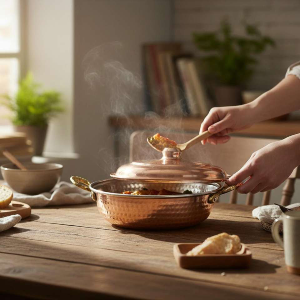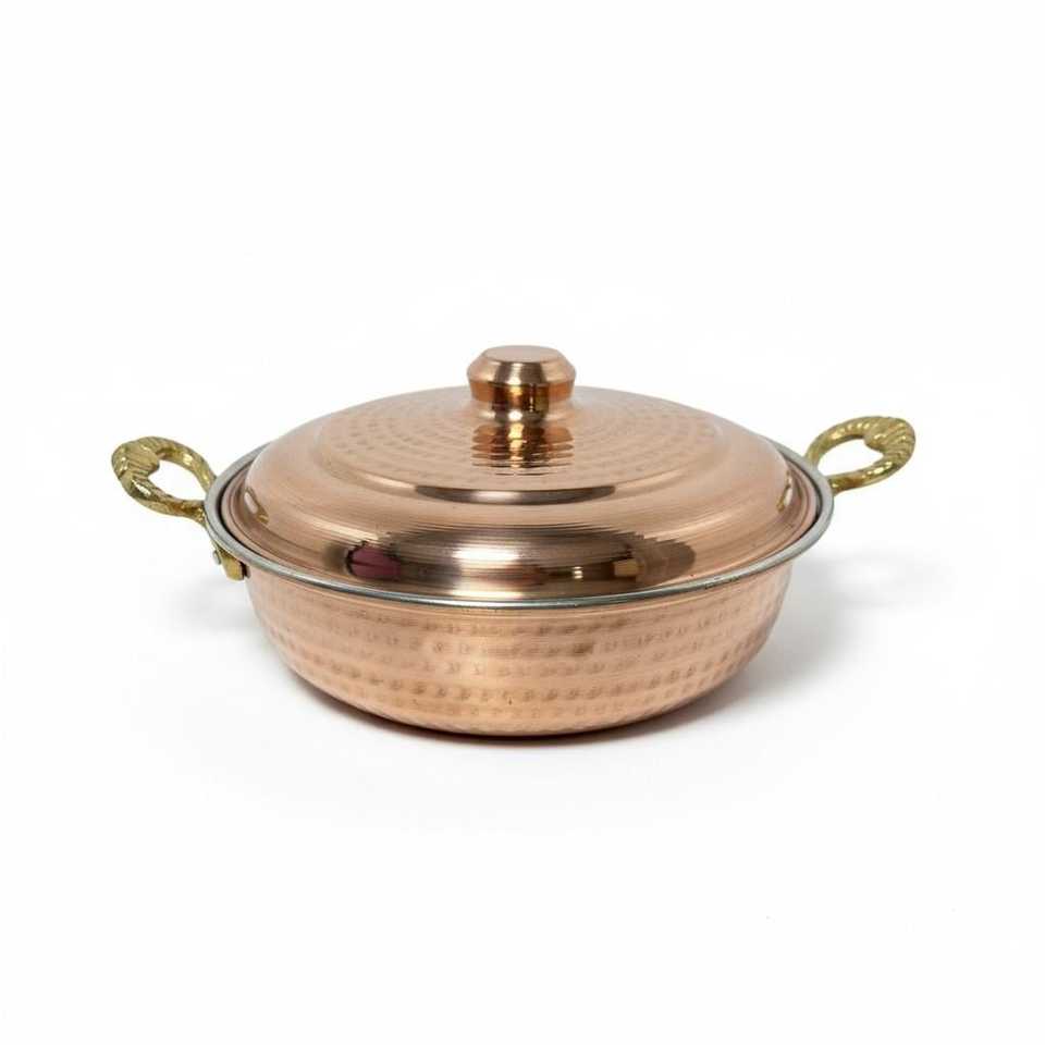 Poêle de cuisson commerciale en cuivre épais forgé à la main avec couvercle