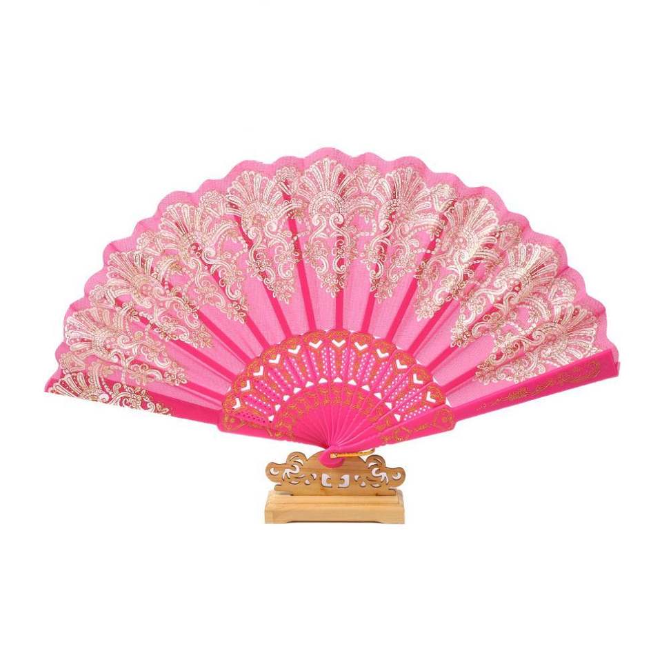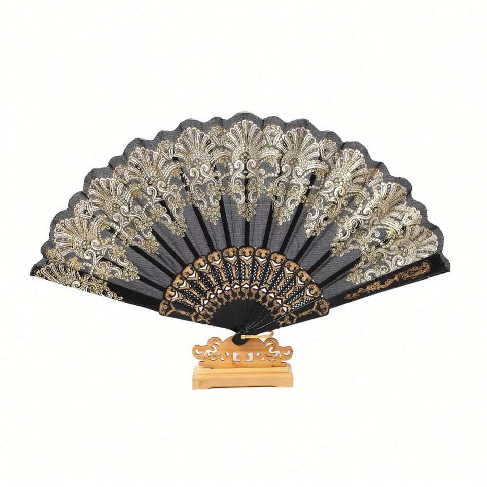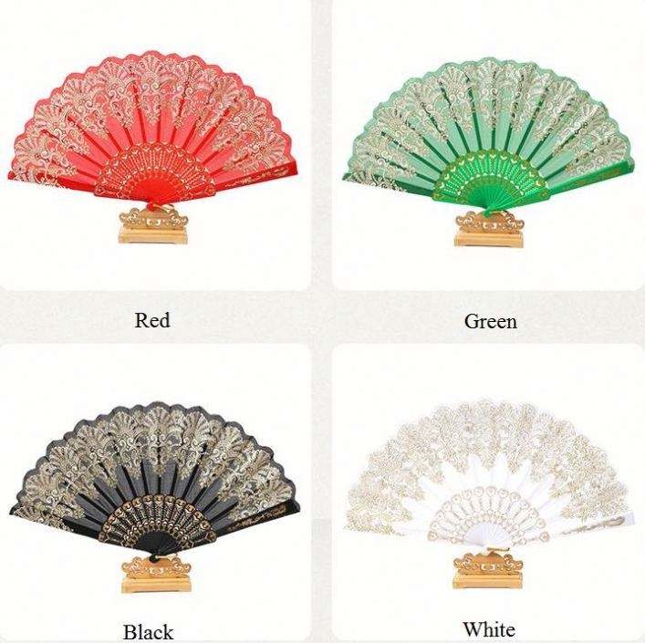 Éventail pliant artisanal en plastique doré, style chinois, pour la danse, les mariages et les fêtes, à tenir à la main