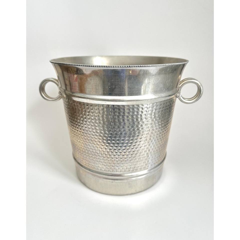 Seau à glace en métal couleur argent martelé à la main avec petites poignées à anneau Barware rétro moderne du fournisseur indien