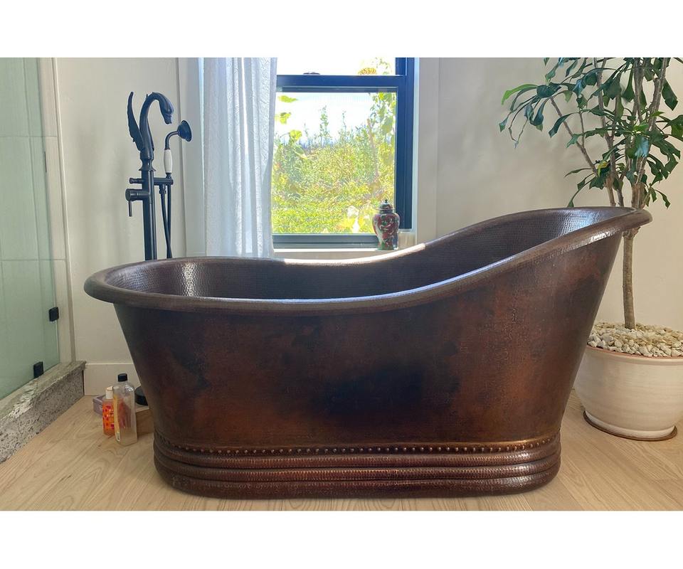 Baignoire autoportante en acier inoxydable martelée à la main Baignoire de trempage durable de style moderne écologique avec bord roulé