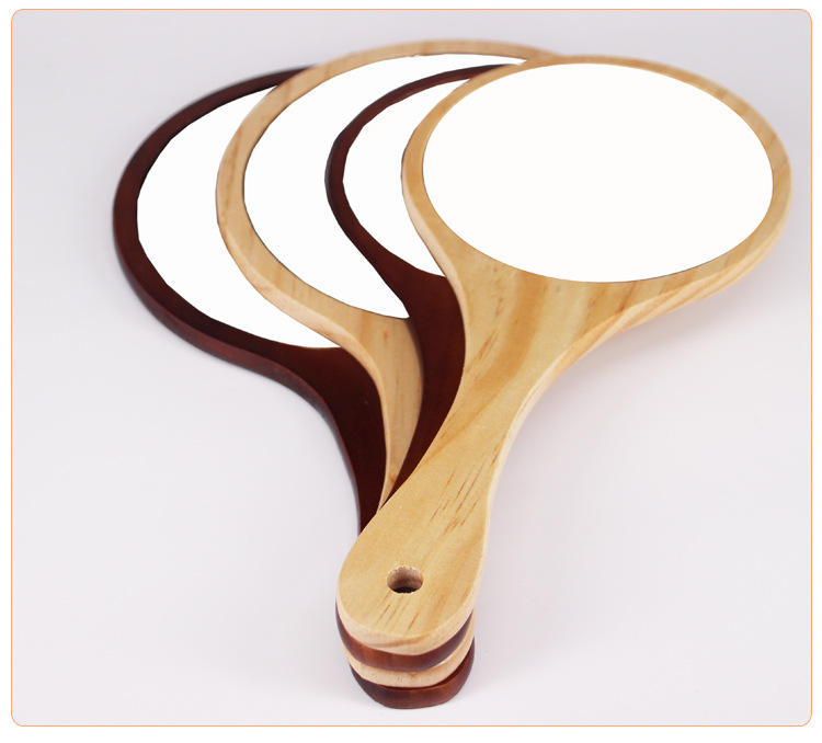 Miroir à main pour le maquillage Petit miroir à main en bois mignon pour le rasage avec trou suspendu Miroir de courtoisie de voyage portable simple face