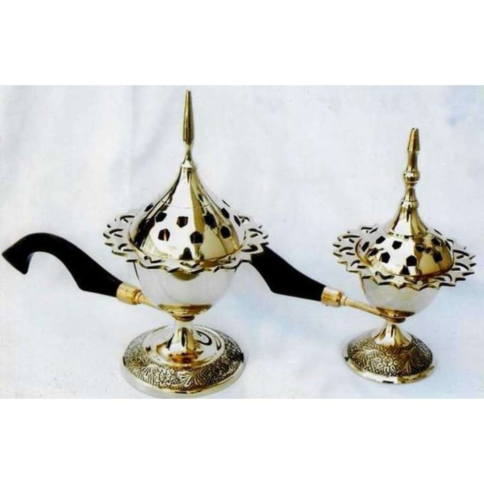 Article religieux Diffuseur de parfums Brûleur d'encens en laiton pur poli brillant avec poignées Festival Mariage Décor Artisanat