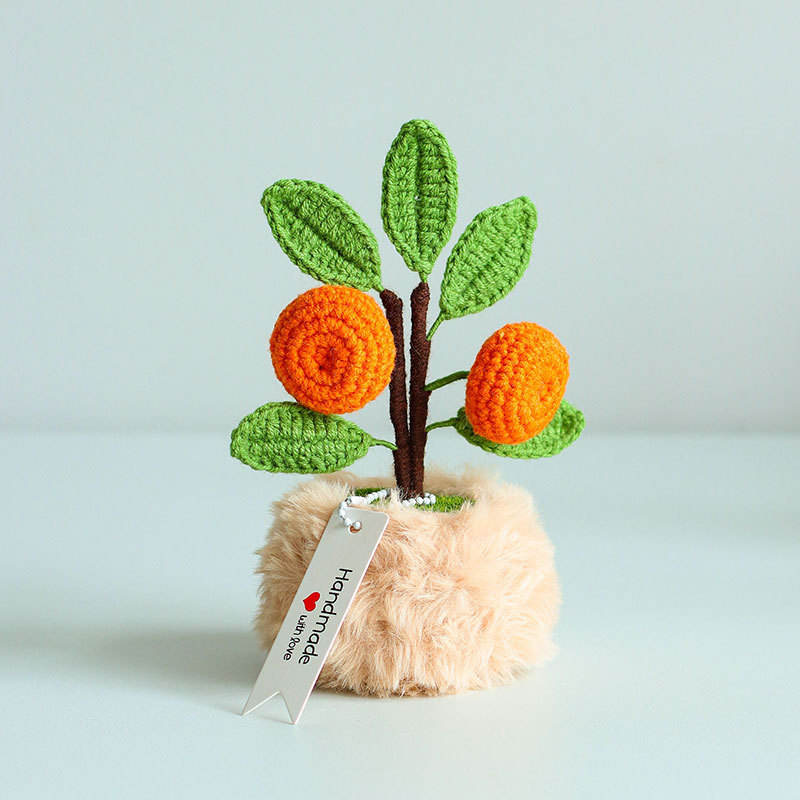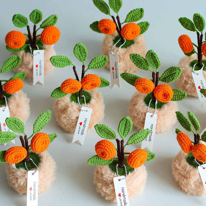 Bouquets de laine tricotés à la main belles plantes en pot orange artificielles ornements de fleurs simulées chanceux cadeaux