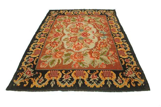 HandKnotted Oushak Rugs Persian Rugs:8x10 Blue Wool Oushak Rug Antique Handknitted Colorful