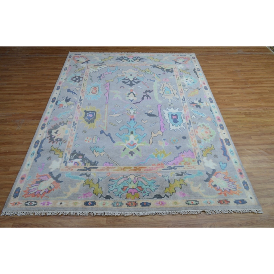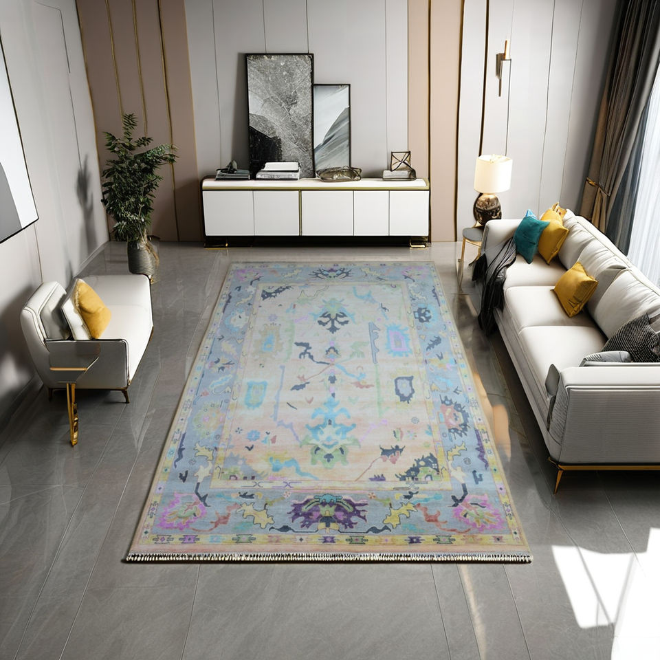 Tapis Oushak noué à la main en laine naturelle