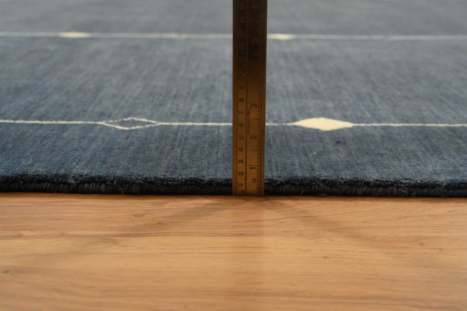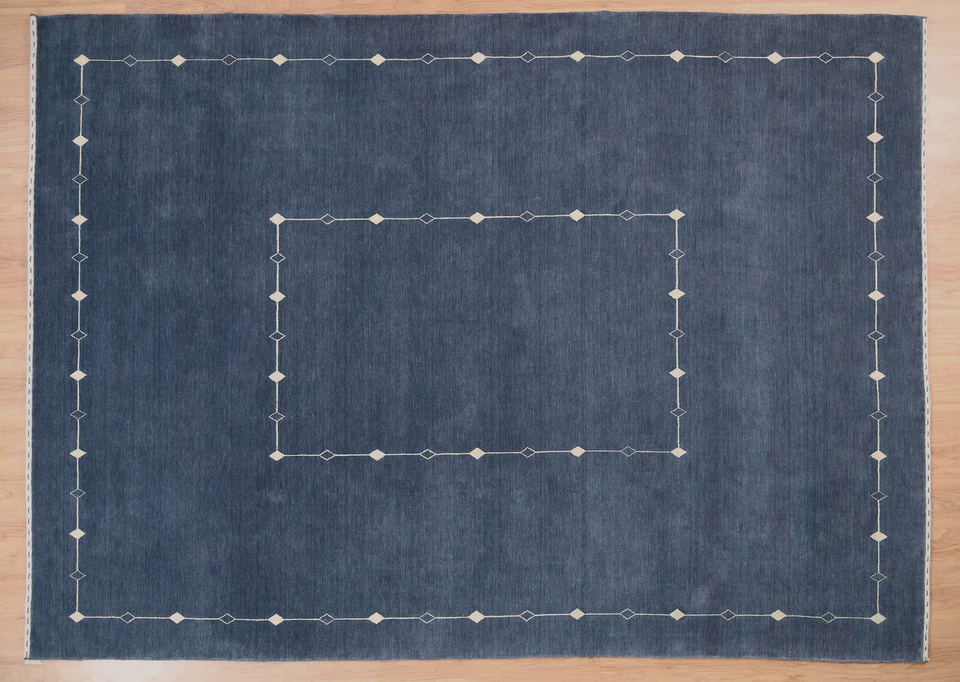 Tapis en laine noué à la main Gabbeh bleu-gris à motif losanges, tapis moelleux de style campagnard pour salon et chambre à coucher