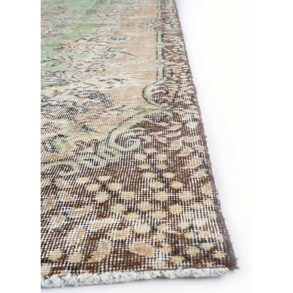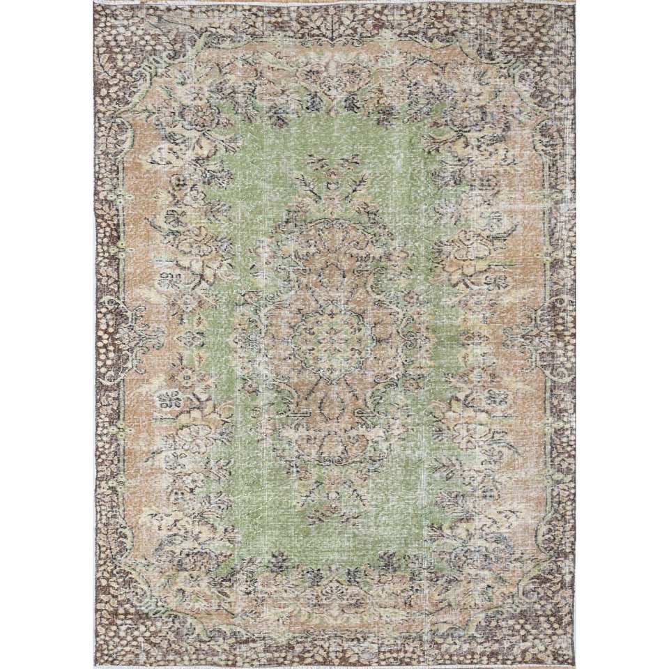 "Hand-Knotted Wool Vintage Green Rug-Large Area Living Room Carpet (Pae-2946)"