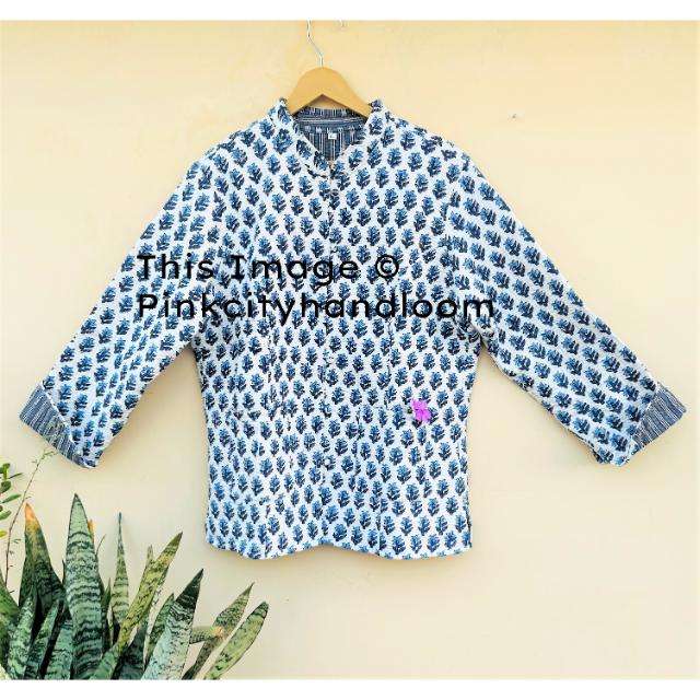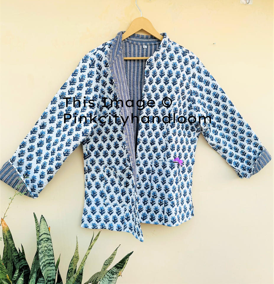 Vestes matelassées imprimées en blocs faites à la main pour femmes manteaux de style bohème veste réversible vintage en pur coton avec fermeture à bouton