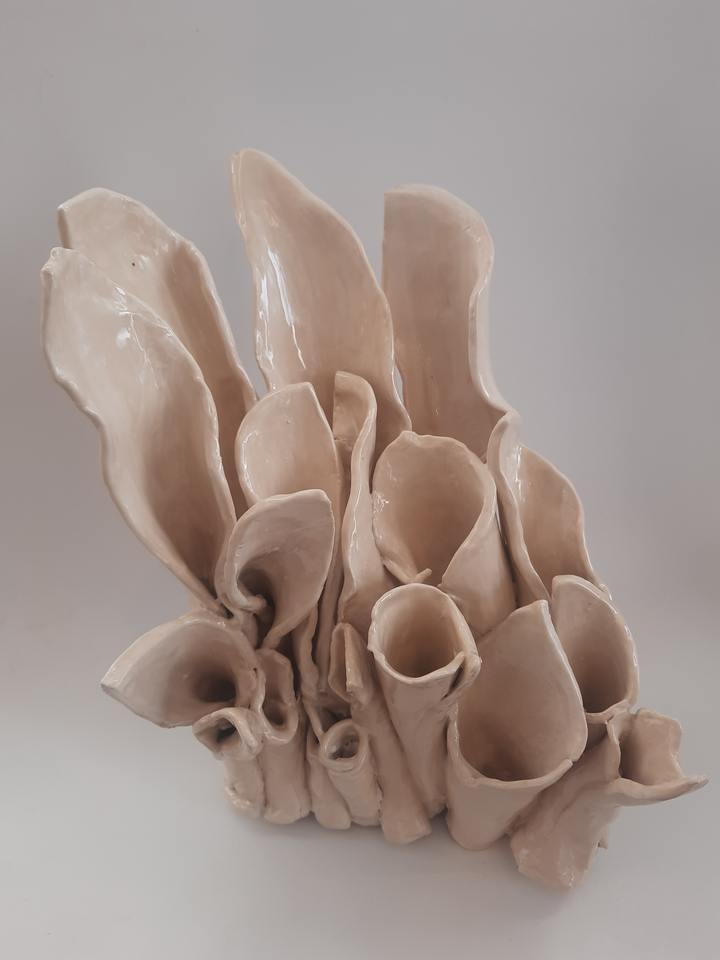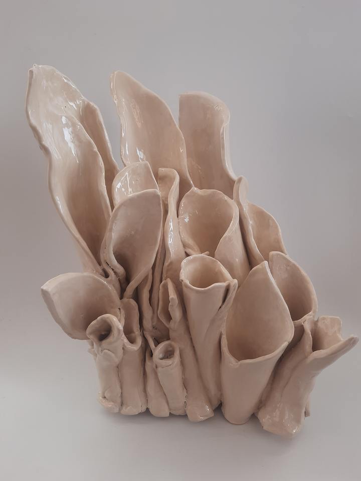 Sculpture en céramique faite à la main-Objet abstrait-Les larges bois blancs-Objet en céramique élégant