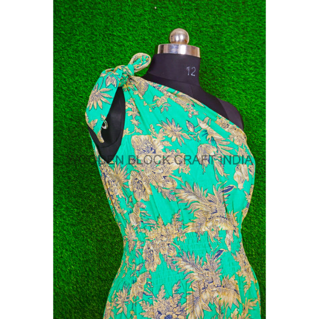 Robe de mariée confortable faite à la main, cadeau pour elle, en pur coton, robe à une épaule, imprimée à la main, indienne