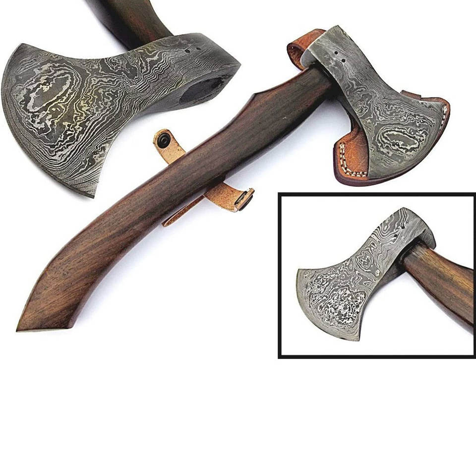 Hache en acier Damas faite à la main, outil traditionnel de plein air avec manche en bois massif pour le camping, hache en acier Damas sur mesure