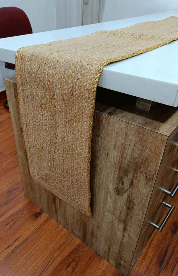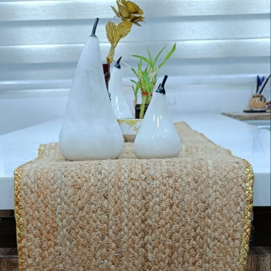 Chemin de Table en Jute fait à la main avec bordure dorée