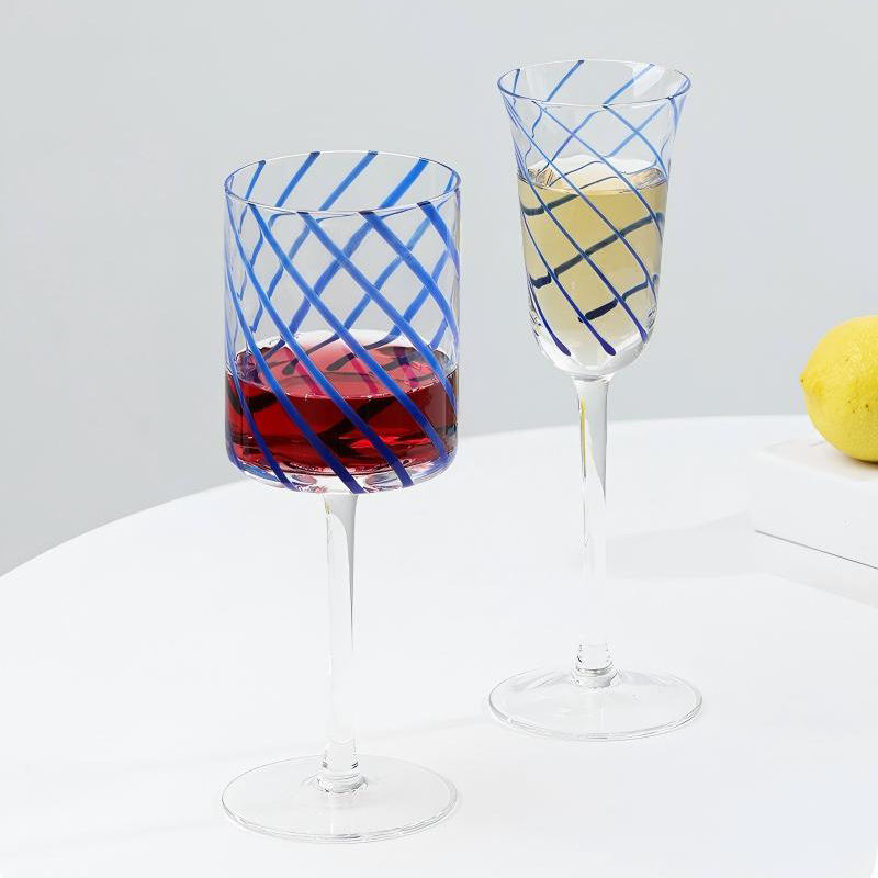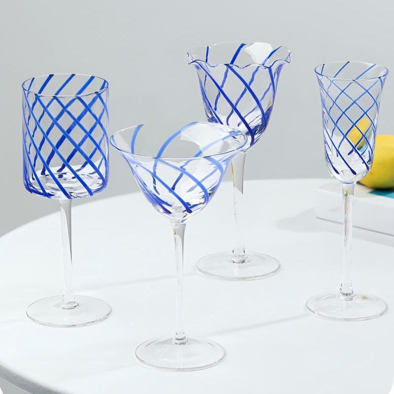 Product Name:Hand Made Mouth Blown Blue Striped Water Goblets Wine Glass
