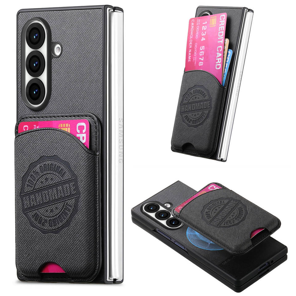 Coque de téléphone hybride magnétique faite à la main pour Galaxy Z Fold 7 avec pochette pour cartes, épaisseur 35 mm, légère (40 g)