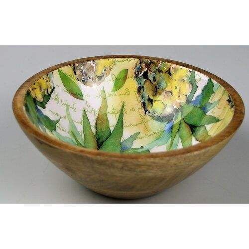 Bol de service en bois de manguier massif, émaillé et peint à la main, pour fruits et ustensiles