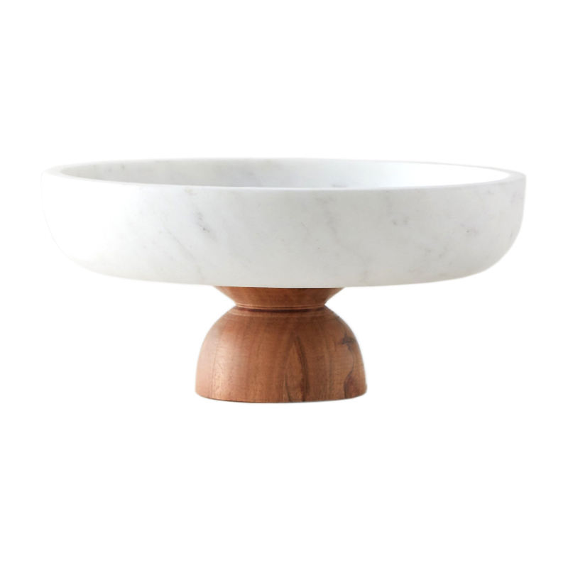 Bol de service pour aliments en marbre Vintage fait à la main, avec Base en bois pour décoration de maison, bol de service de riz en vente en gros, 1 pièce
