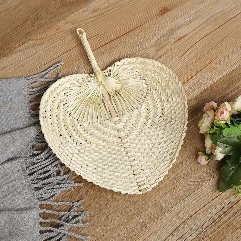 Éventail tissé à la main en rotin, décoration, éventails à main, éventails en bambou et en raphia, en forme de cœur