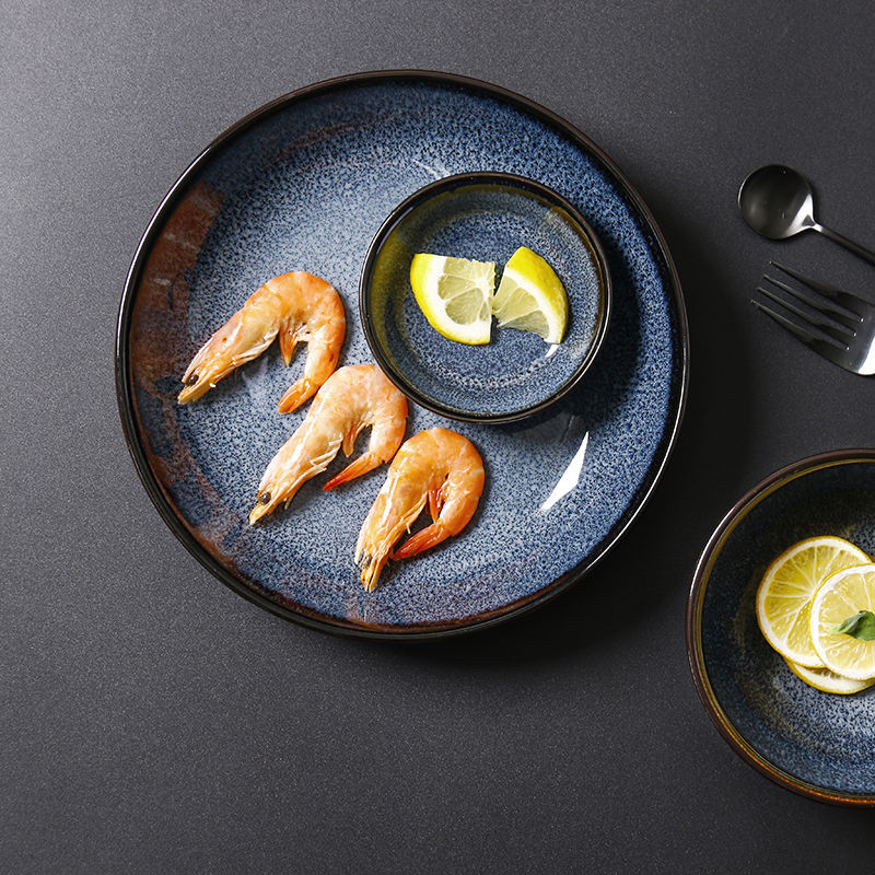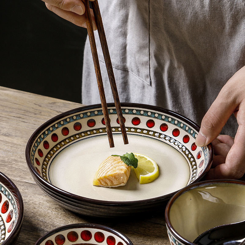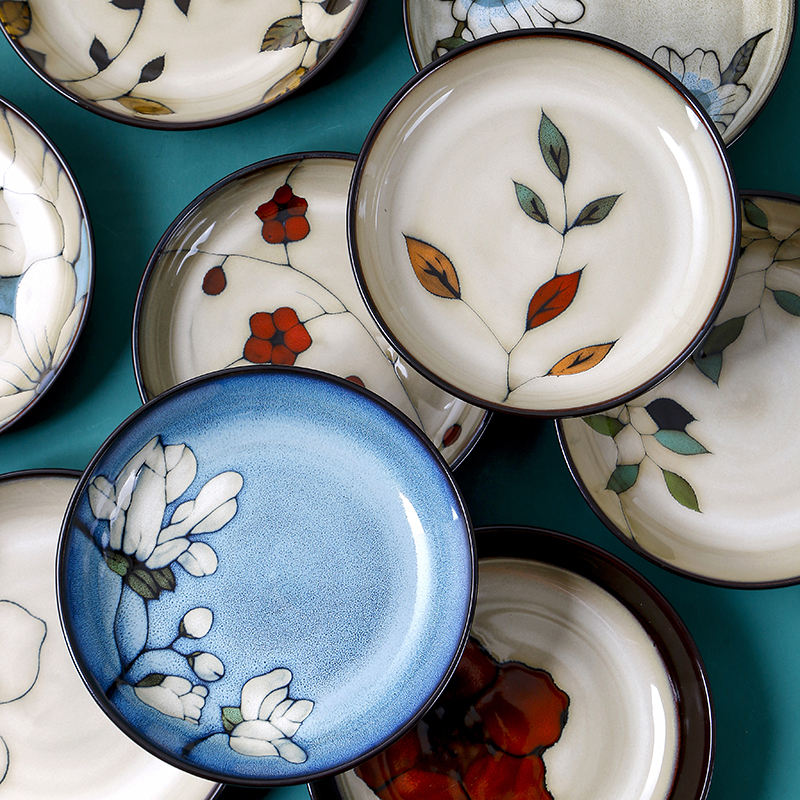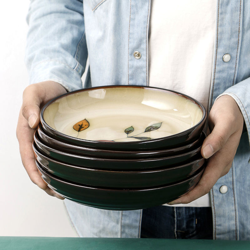 Assiettes à dîner en grès peintes à la main de 8 pouces de profondeur Assiettes à salade pâtes apéritif Passe au micro-ondes et au lave-vaisselle pour les réunions de famille