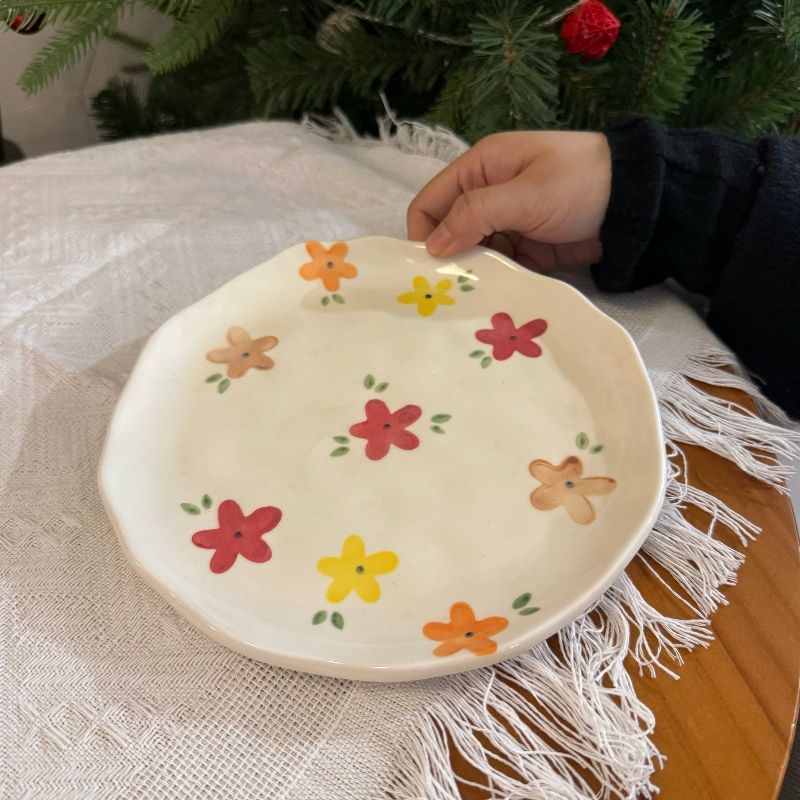 Assiettes en céramique florales peintes à la main de 8 pouces Porcelaine plate élégante colorée avec motif végétal pour les occasions spéciales à manger à la maison