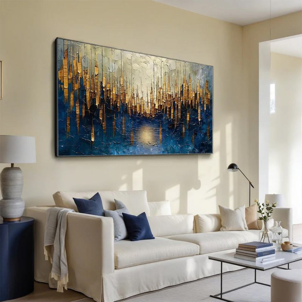 Peinture à l'huile abstraite peinte à la main, grand format, paysage minimaliste, toile texturée douce et neutre, art mural moderne original, 3 couleurs