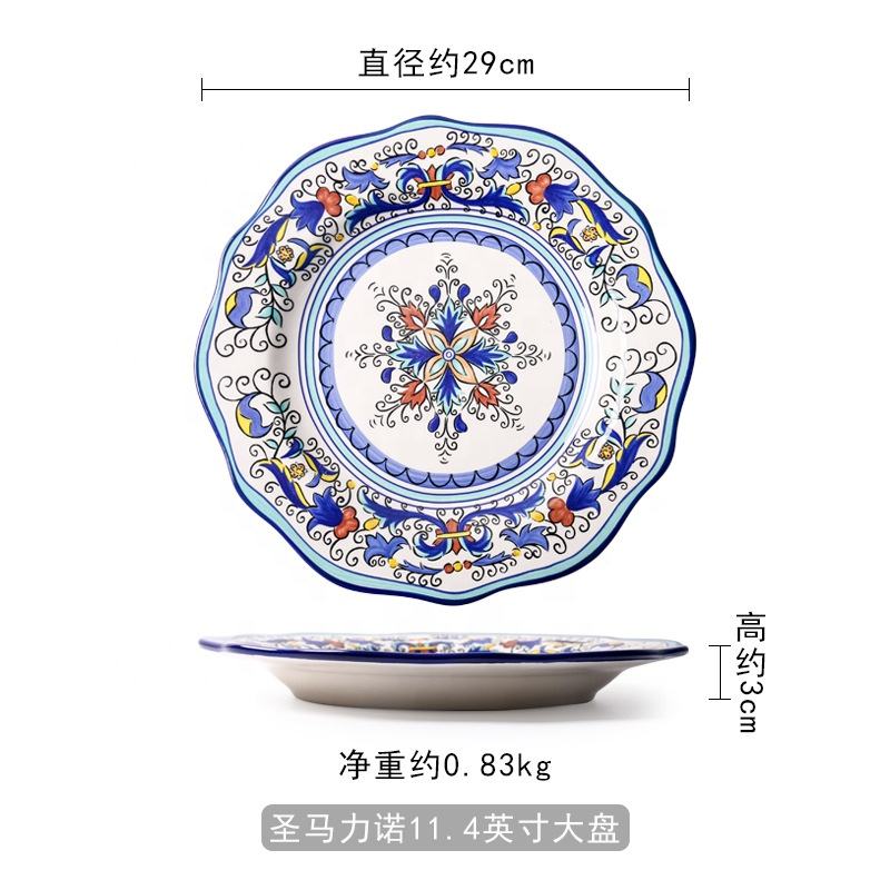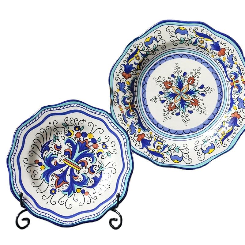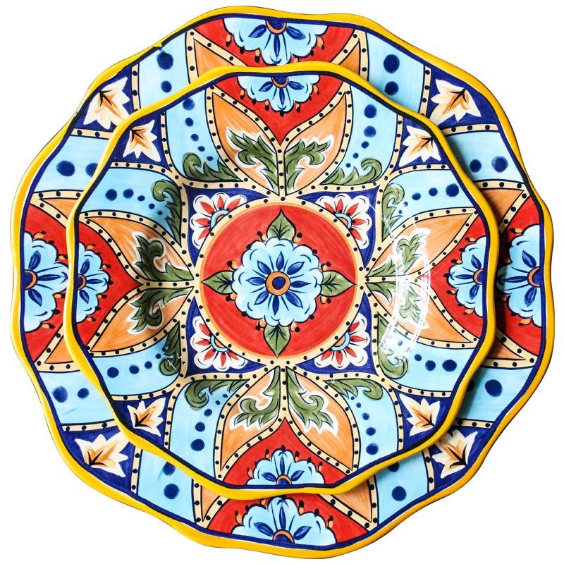 Hand-Painted Ceramic Creative Irregular Bohemian Dish Salad Plate Home Charger Plate Dish