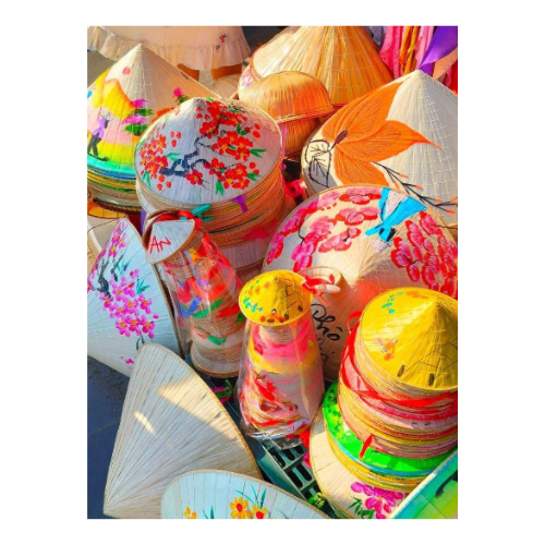 Chapeau en bambou conique à motif de fleurs peintes à la main Non La Hat Palm Leaf Traditional Souvenir Gift from Vietnam