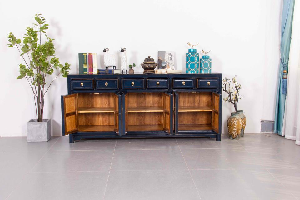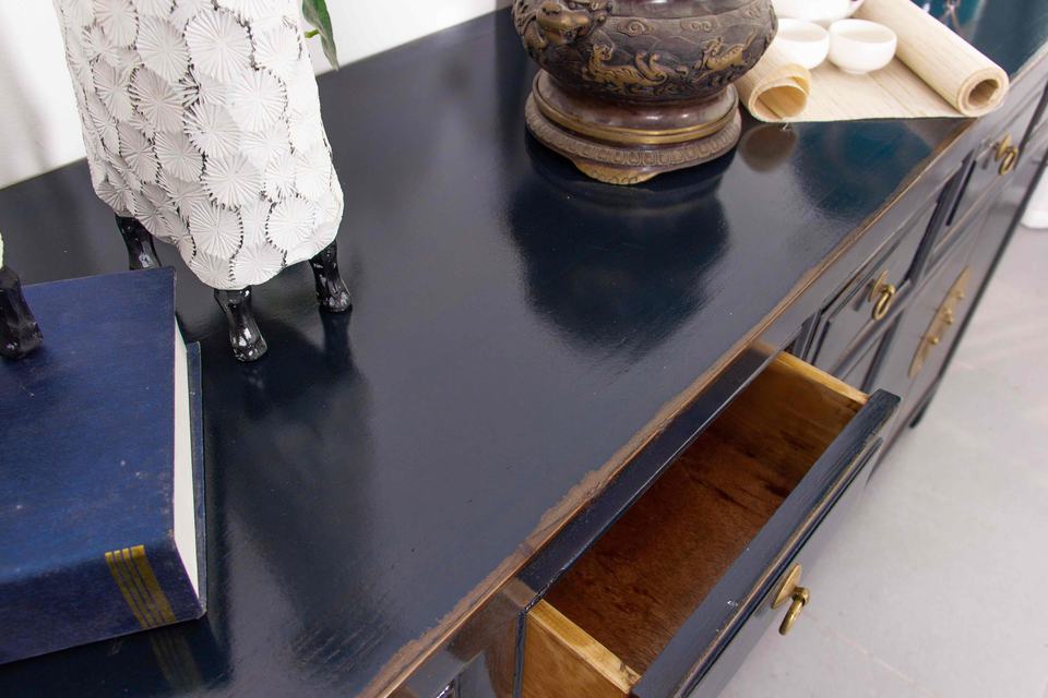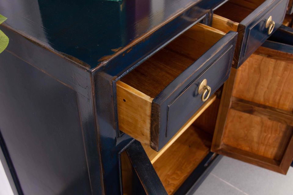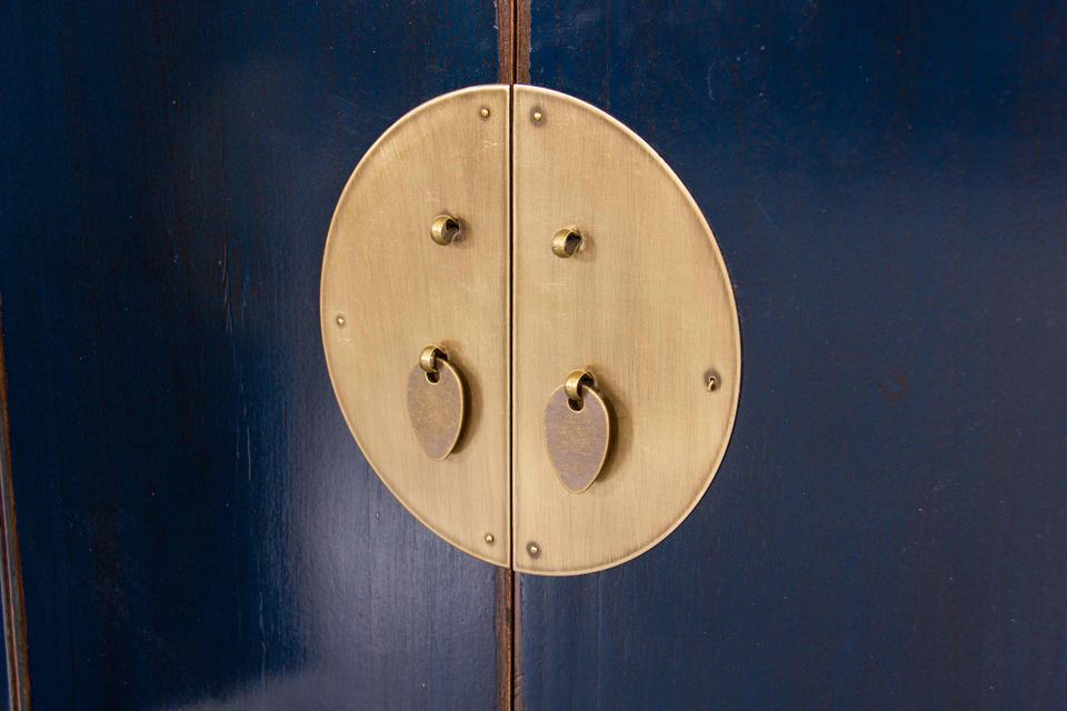 Peint à la main pivoine Phoenix laiton vieilli matériel buffet bois massif Vintage chinois Antique prospérité richesse signification