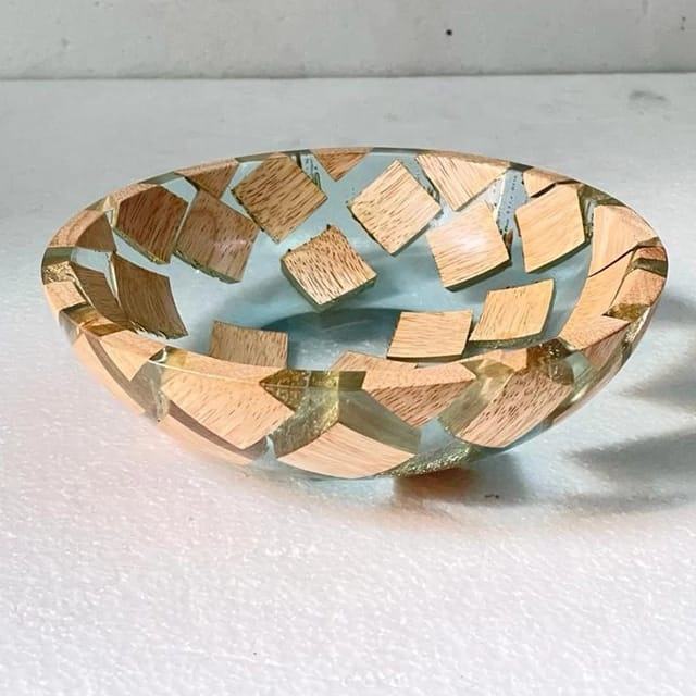 Vaisselle de service en résine époxy en bois de mangue poli à la main bol rond ou saladier bol à fruits décoratif en gros petit créatif