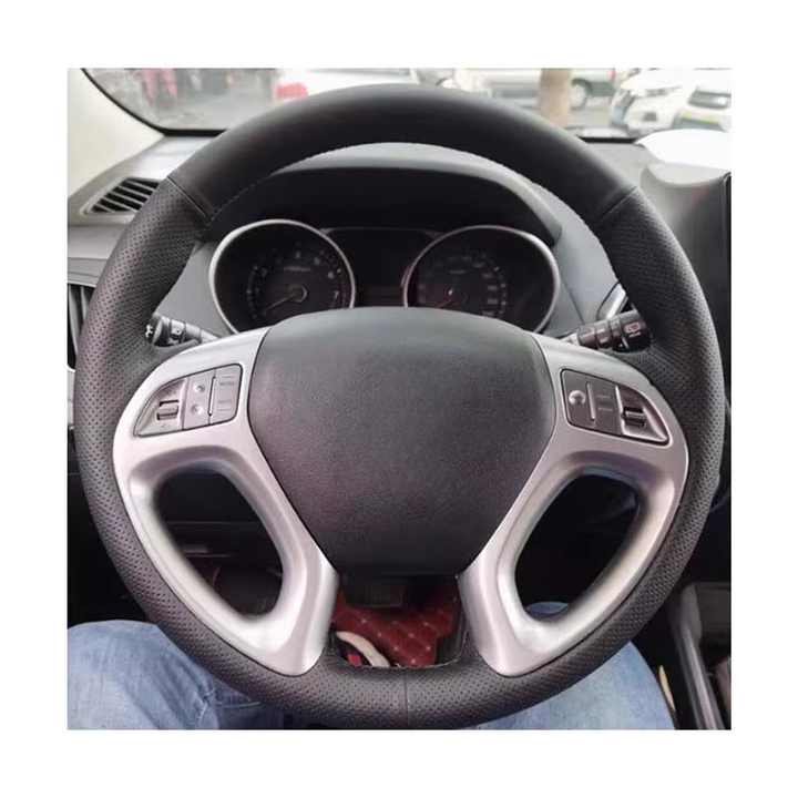 Housse de volant en cuir suédé cousue à la main pour Hyundai Ix35 Tucson 2 Style carbone sport Accessoire intérieur Modèles 2011-2015