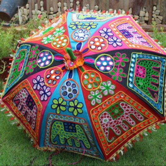 Main Point Fil Travail Protection Solaire Parapluie Coton Tissu Kantha Patchwork Décoratif Haute Qualité Protection Toutes Saisons