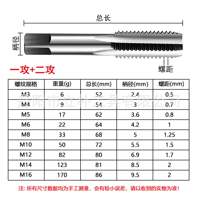 Hand Tap Set 2 Pieces M4 M14 Square Shank Straight Flute Taps For Internal Threading