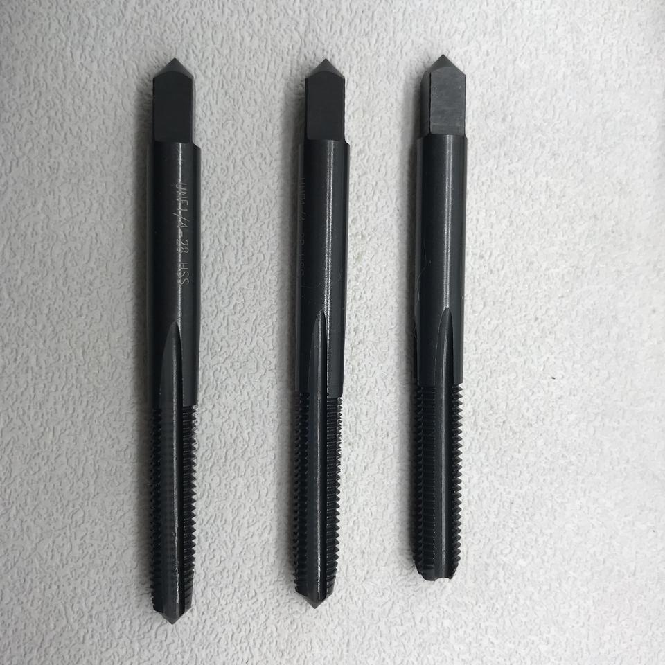 Jeu de 3 tarauds à main UNF 1/4-28 HSS M2 HSSE pour filetage