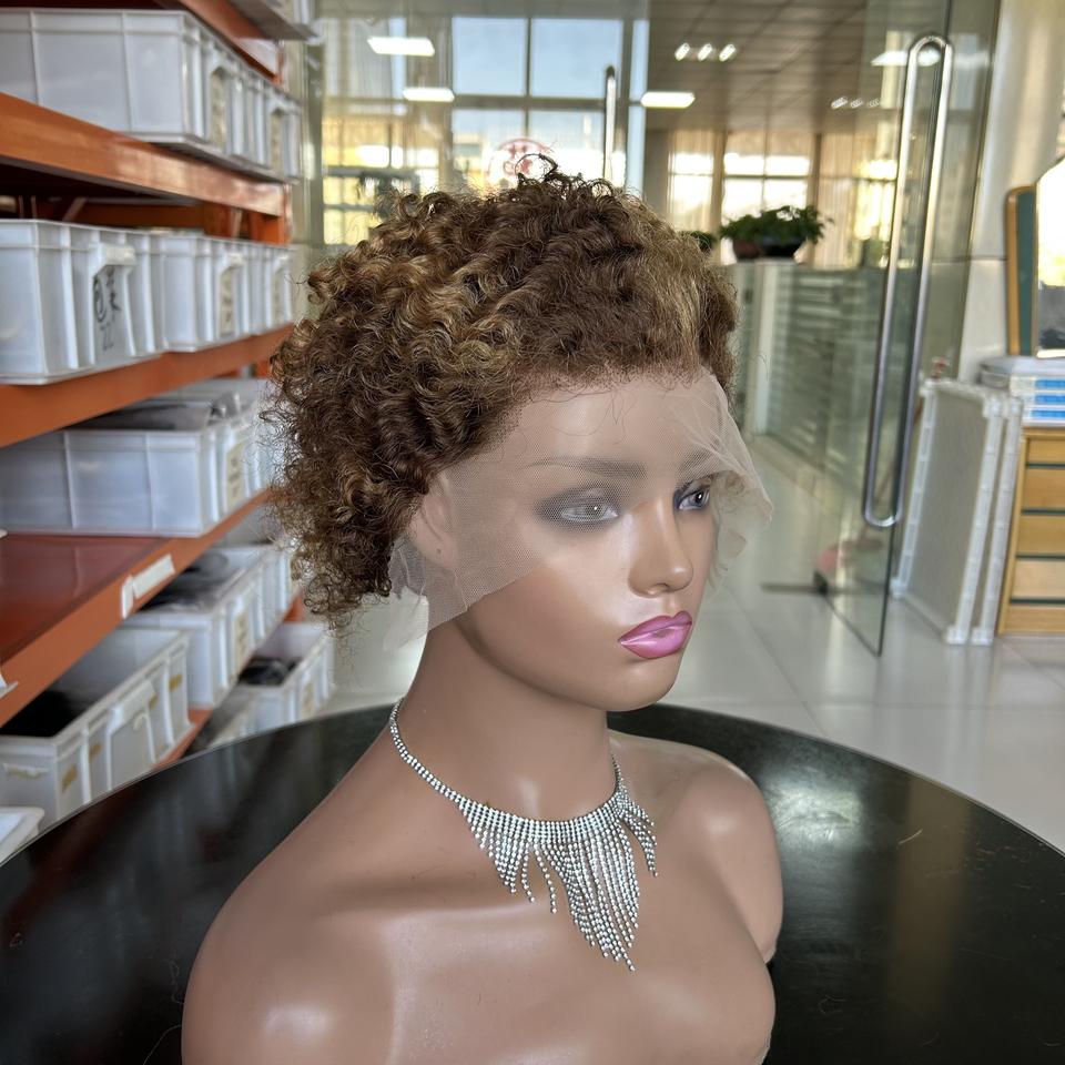 Main Attachée Droite Bob Perruques pour Femmes Petite Taille HD Dentelle Dégradé Noir Bouclés Court Brut Vietnam Cheveux Humains