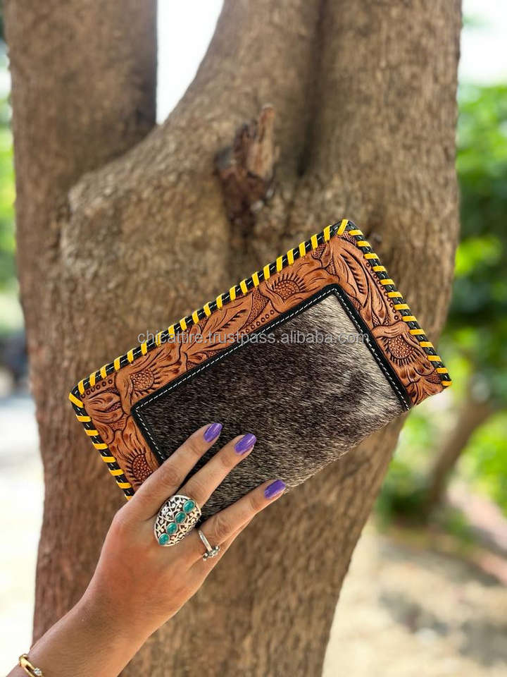Portefeuille sculpté usiné à la main pochette coque de téléphone cuir de vachette élégant nouveau Design portefeuille multi-usages portefeuilles en cuir occidental