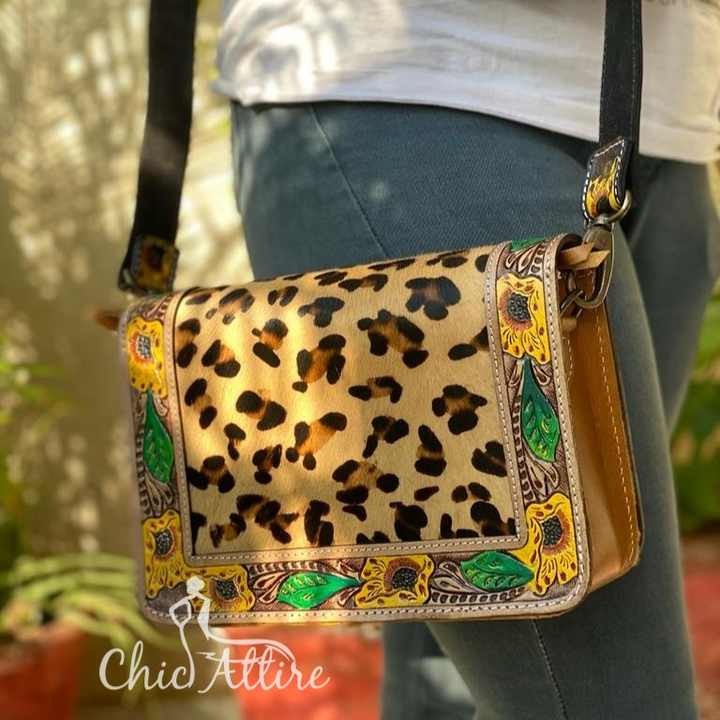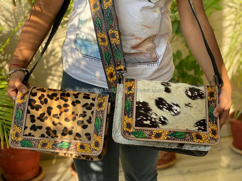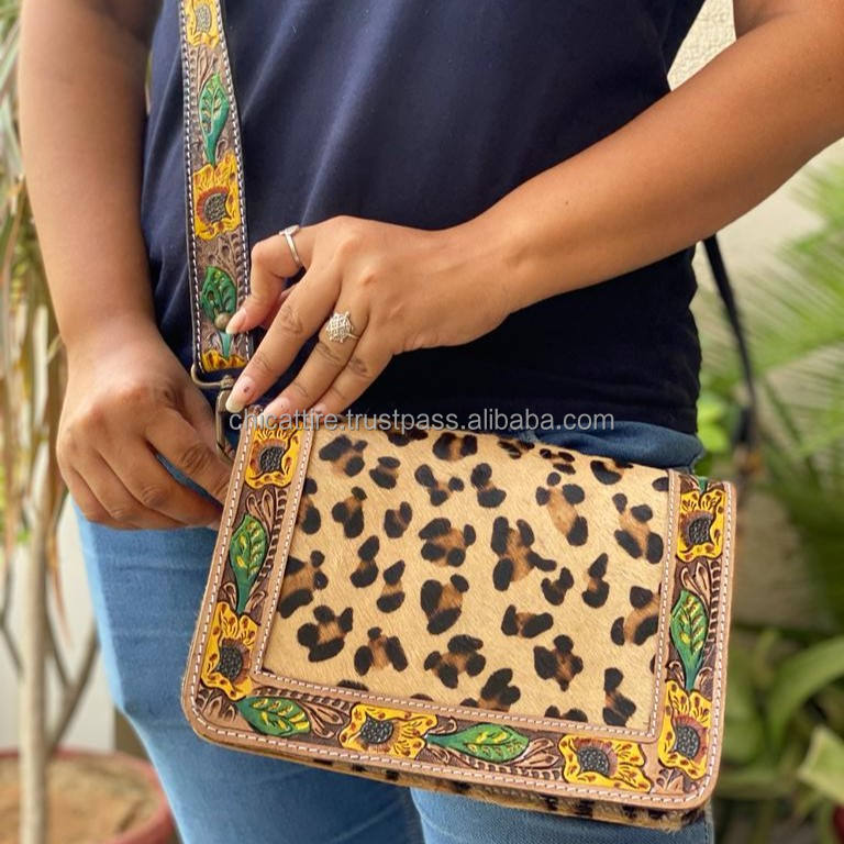 Sac en cuir repoussé à la main Sac à main Sac en bandoulière repoussé en fourrure de léopard Sac à main en cuir pour femmes Sacs en cuir