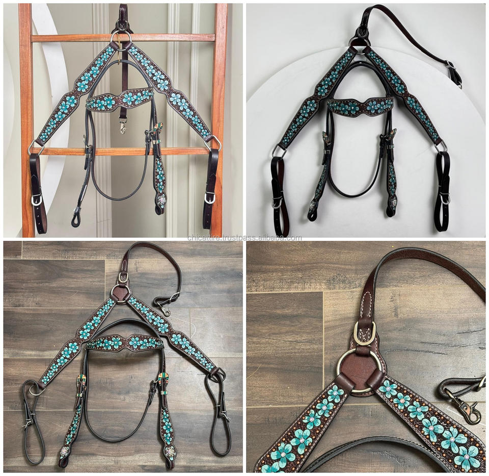 Hand Tooled Leather Horse Headstall Horse Breast Collar SetProduct name
