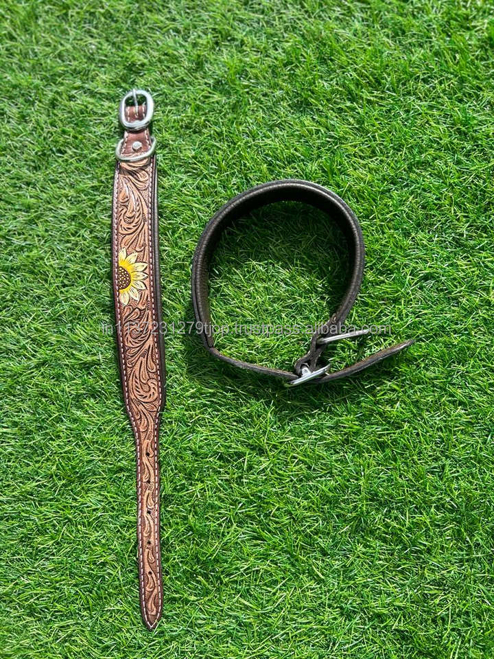 Pattern Type:Real Hand Tooled Leather Adjustable Dog Collars