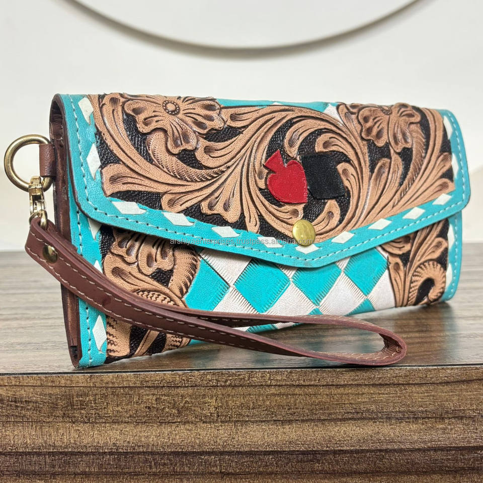 Nom du produit:Portefeuille bracelet en cuir à carreaux façonné à la main
