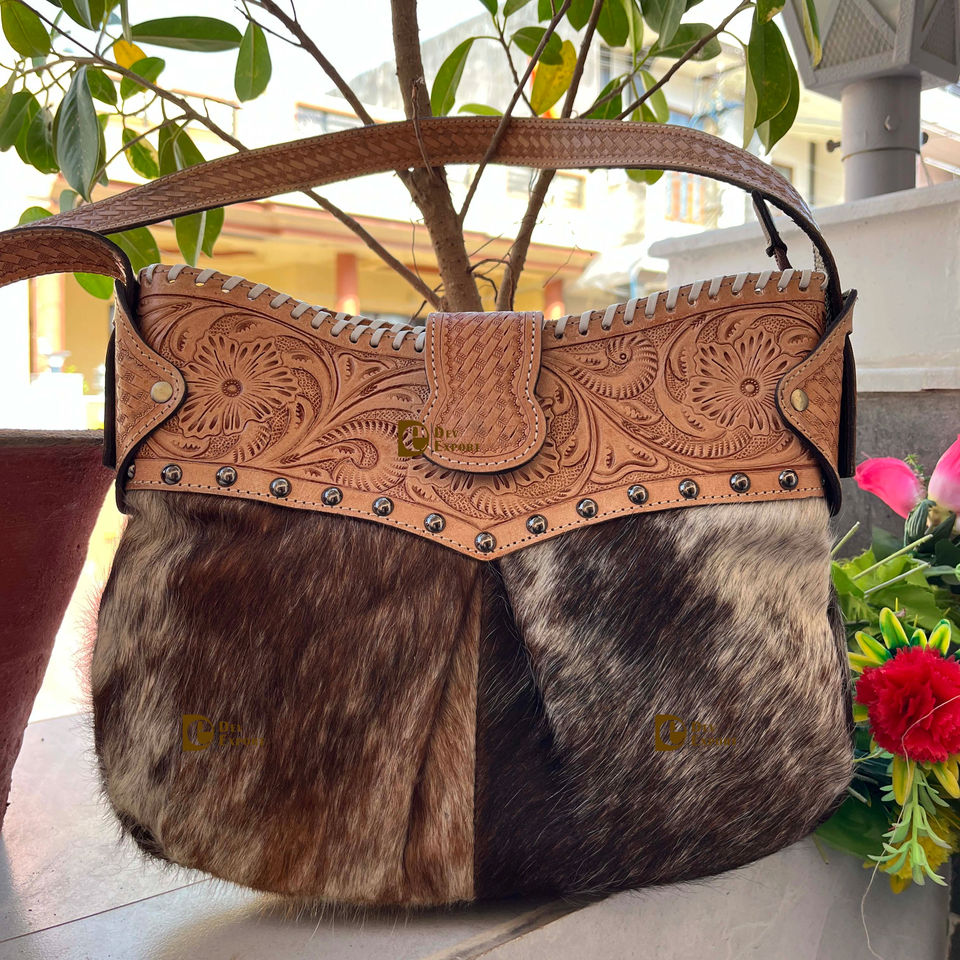 Hand Tooled Western Cowhide Leather Bohemian Handbag for Women Lightweight 2-2.9L Capacity Letter Decoration New Style Hot