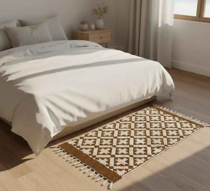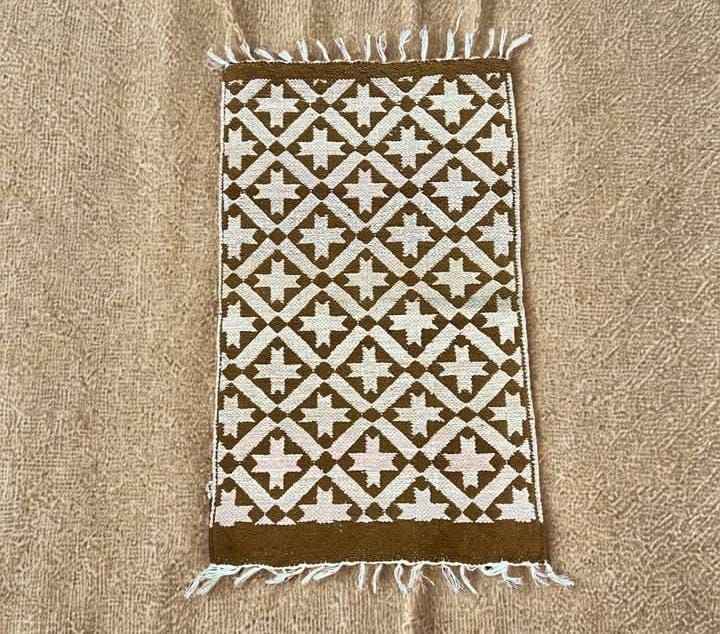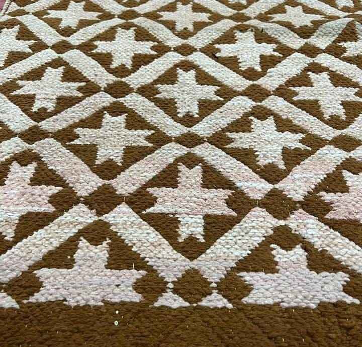 Tapis en laine brun et blanc fait main, géométrique, diamant, étoile, treillis, moderne, bohème, salon, style vintage