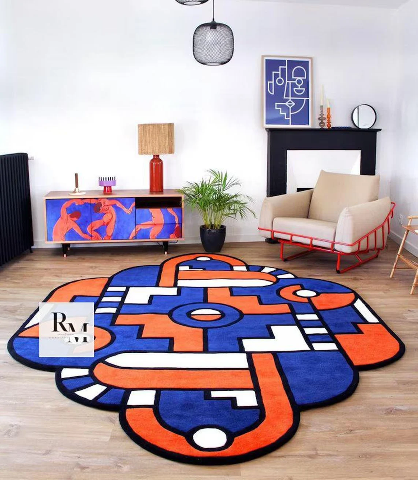 Tapis moderne tufté à la main en laine de créateur sur mesure imprimé multicolore forme irrégulière pour salon salle à manger revêtement de sol maison
