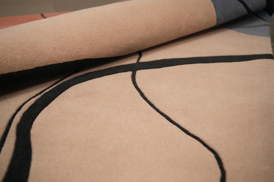 Tapis de sol moderne beige texturé luxueux en laine de Nouvelle-Zélande tufté à la main, à poils longs, antidérapant, anti-chute de poils et anti-taches, collection Salt Sun