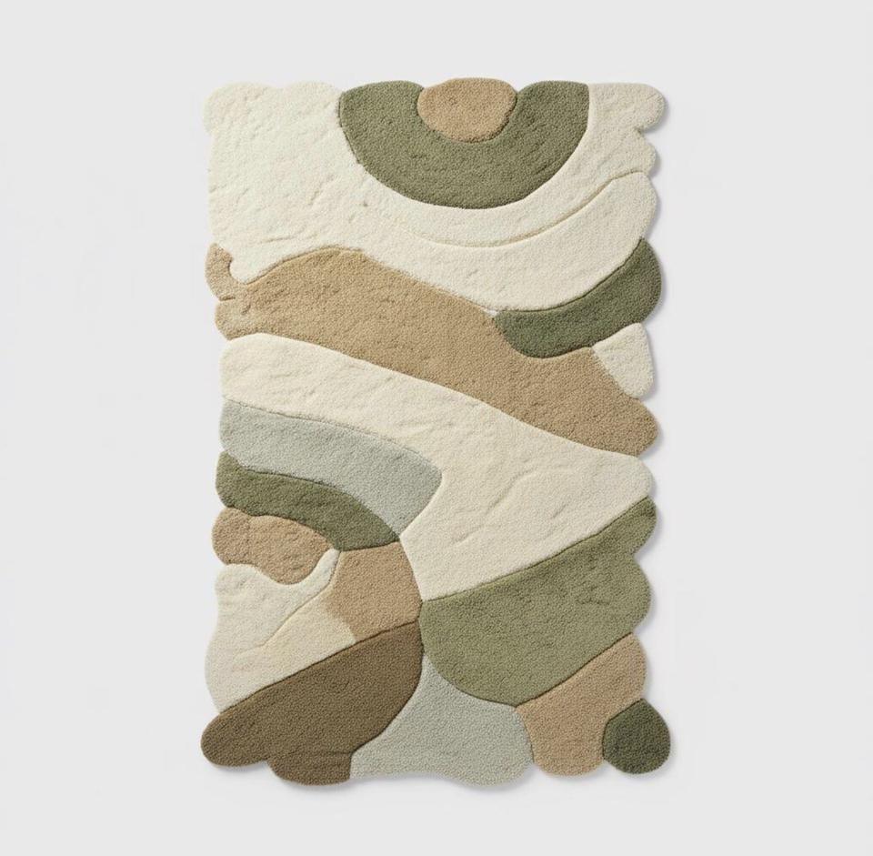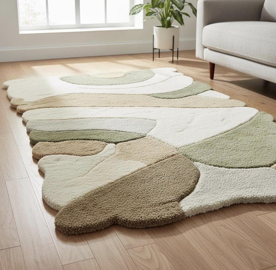 Tapis en laine tufté à la main, moderne, abstrait, beige et vert neutre, pour salon, chambre, décoration intérieure, tapis doux et luxueux