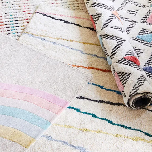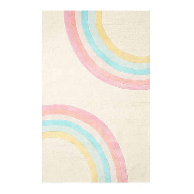 Tapis en laine tufté à la main, motif arc-en-ciel pastel, tapis pour enfants, tapis doux fait main pour chambre d'enfant, salle de jeux et chambre à coucher
