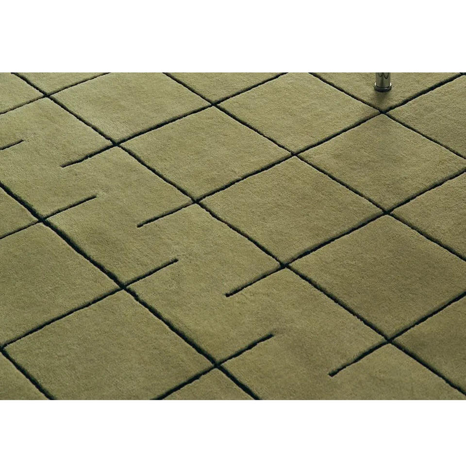 Tapis en laine tufté à la main, motif géométrique, tapis moderne vert sculpté, tapis fait main sur mesure, Inde