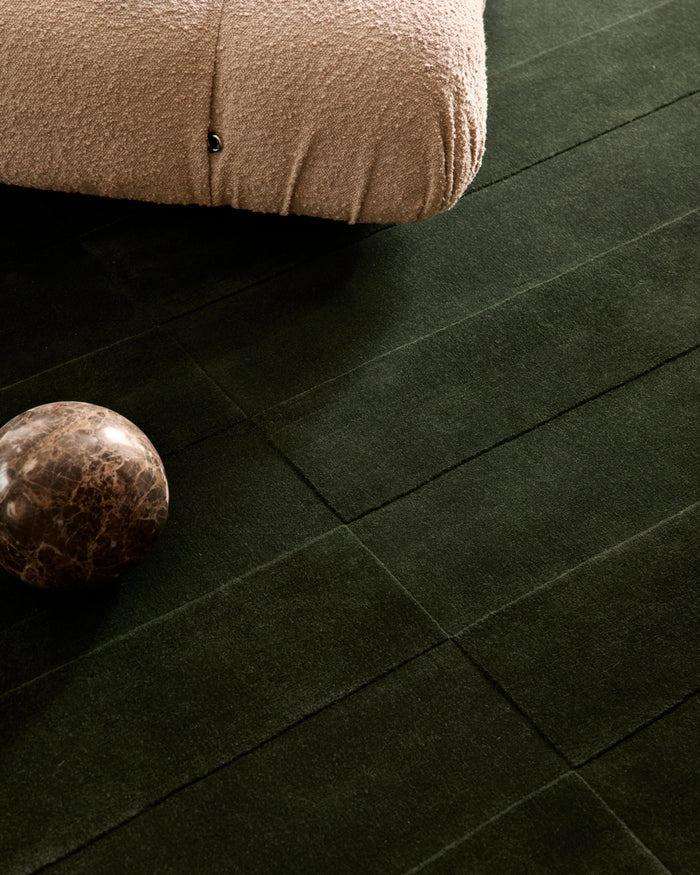Tapis en laine tufté à la main Trace Rug Emerald, tapis design moderne, poils de 14/16 mm, lavable et durable, poils coupés sur mesure, fabriqué à la main en Inde