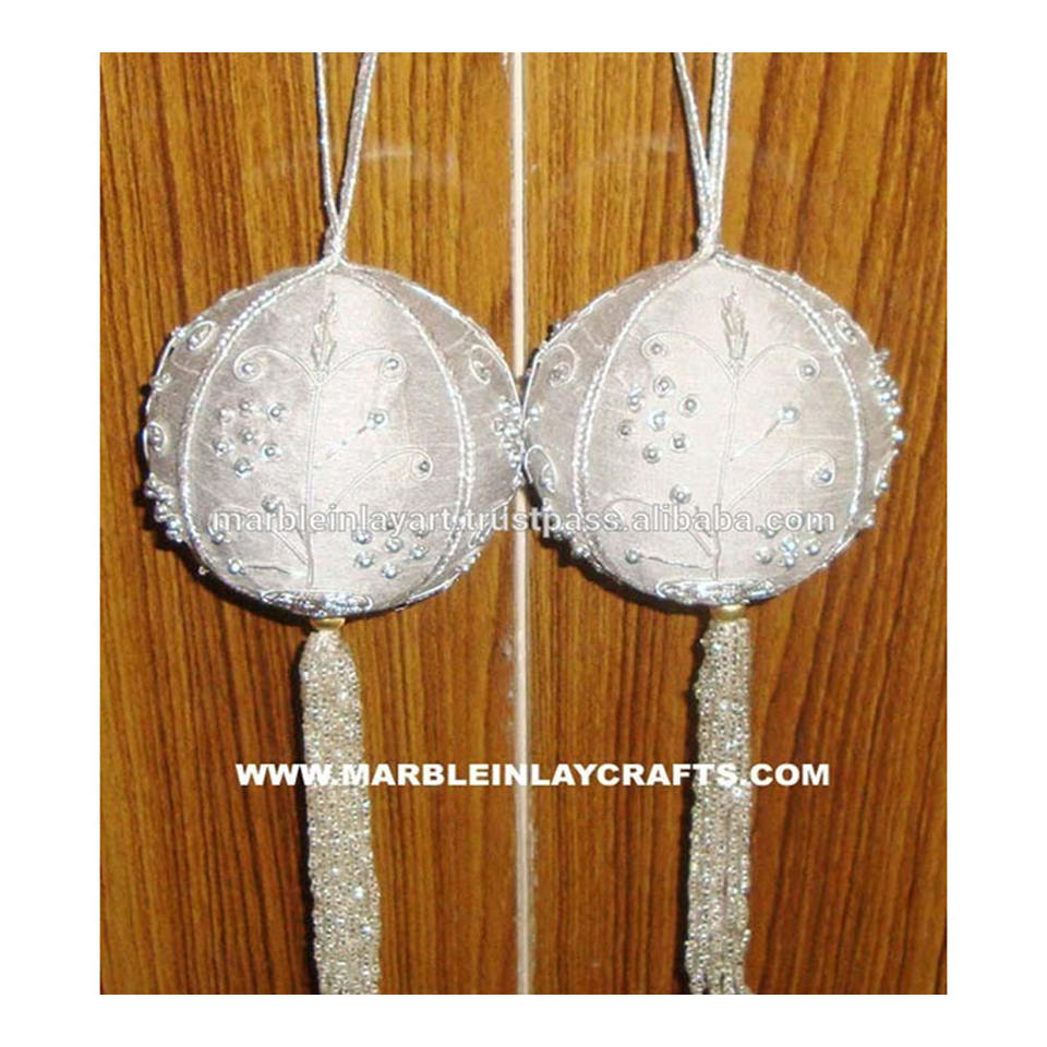 Boules de Noël suspendues brodées à la main avec des perles et des broderies Zari pour les décorations de Noël