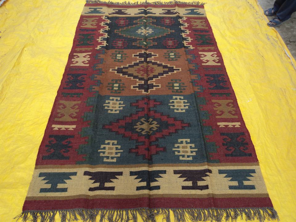 Hand Woven 5x8 Feet Jute Wool Kilim Oriental Living Room Area Rug Flat Weave Kitchen and Bedside Rug