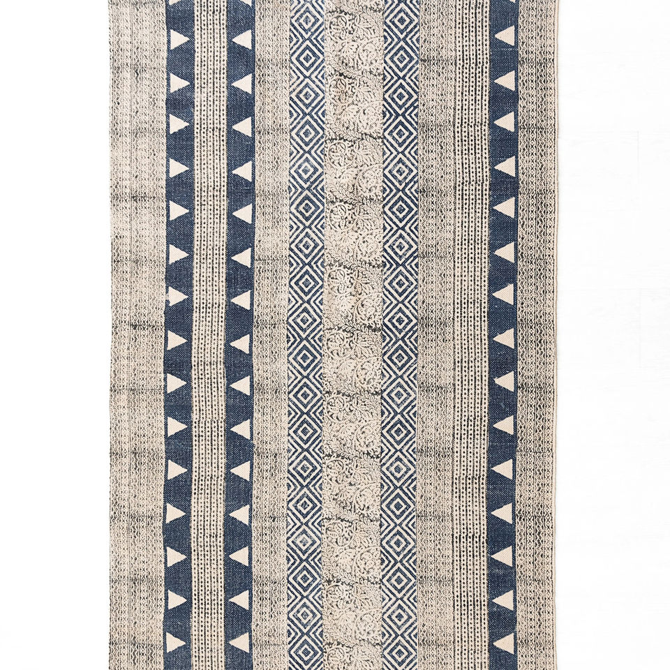 Lavable, Antidérapant, ACCEPTANT les animaux domestiques, Block-Printed Cotton Dhurry
