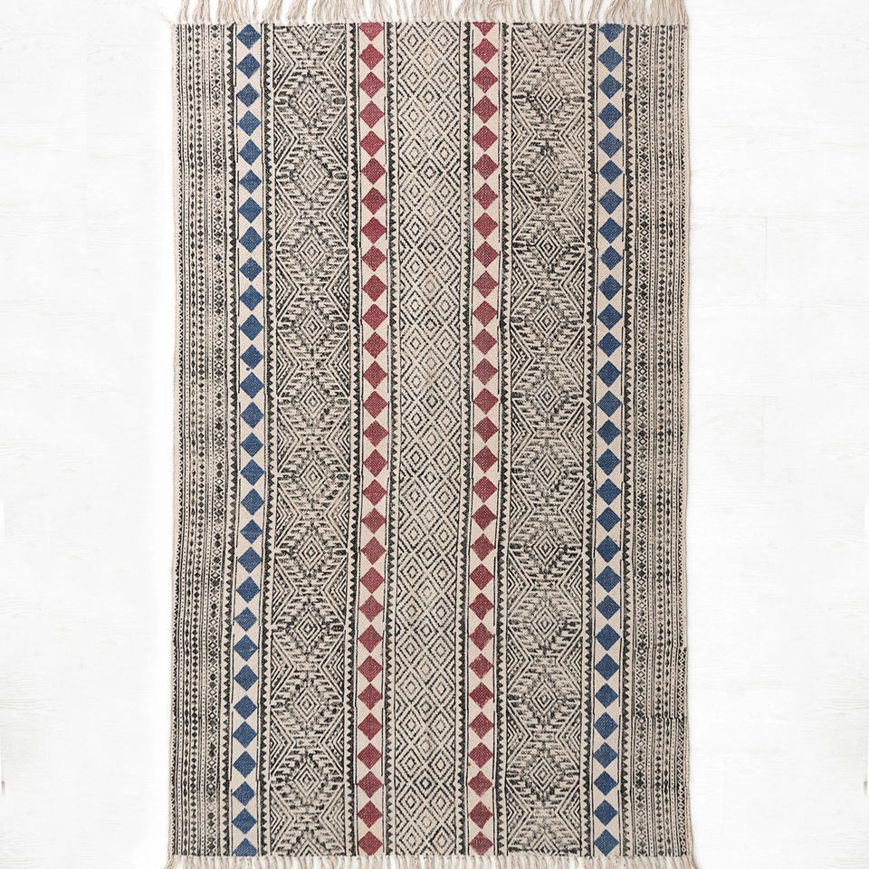 Lavable, Antidérapant, ACCEPTANT les animaux domestiques, Block-Printed Cotton DhurryDispositif